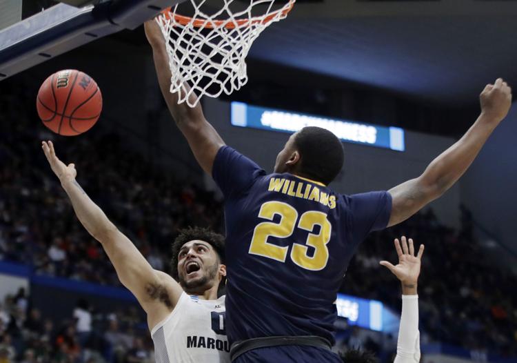 How might you be able to tell which teams these are if you don’t know much about college hoops? Simple— does the team have its players’ names on the back of their jerseys. If it is a “big school”, chances are the players’ last names will appear on the back of their jerseys. If it’s one of the schools that is in the tourney by virtue of an automatic bid, chances are all that all you’ll see on the back is a number and perhaps the logo of the company that makes their jerseys.