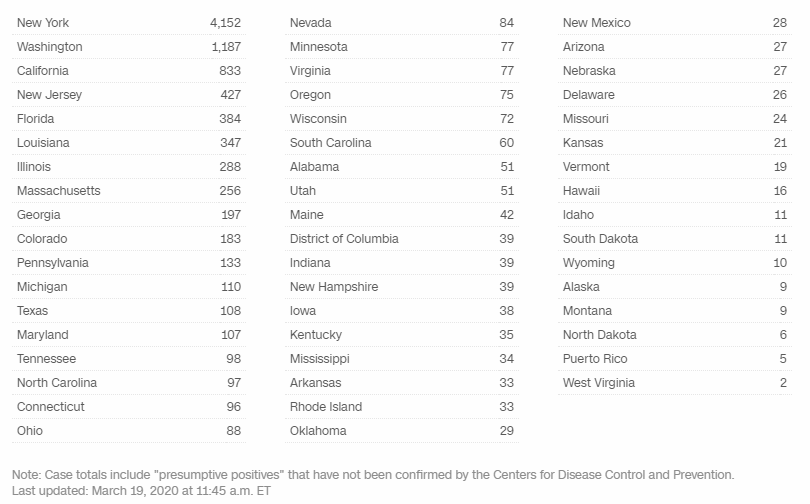 The Coronavirus – By the Numbers, State-by-State – Thursday, March 19th Posted byDavid Lee MoserMarch 19, 2020Posted in#corona, #coronavirus, #education Rate this:Share this: Click to share on Facebook (Opens in new window) Facebook Click to share on X (Opens in new window) X Like Loading... Related Published by David Lee Moser I am a sixty-five year old semi-retired elementary teacher. View more posts