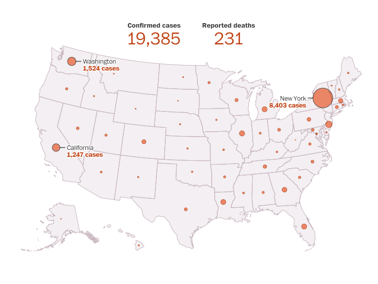 Coronavirus by the Numbers: U.S. confirmed cases for March 21st, 2020 Posted byDavid Lee MoserMarch 21, 2020Posted in#corona, #coronavirus, #education, #news, #virus Source: https://www.washingtonpost.com/graphics/2020/world/mapping-spread-new-coronavirus/ Rate this:Share this: Click to share on Facebook (Opens in new window) Facebook Click to share on X (Opens in new window) X Like Loading... Related Published by David Lee Moser I am a sixty-five year old semi-retired elementary teacher. View more posts