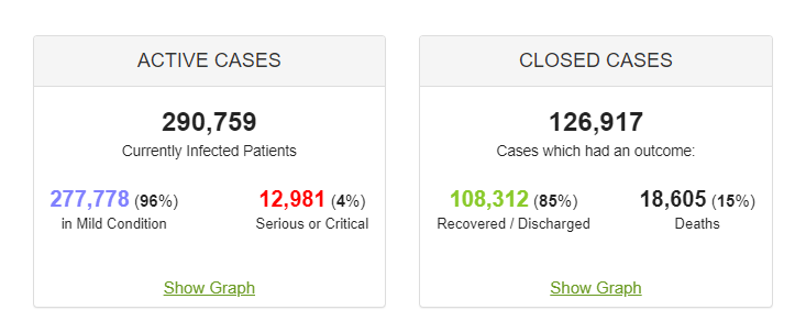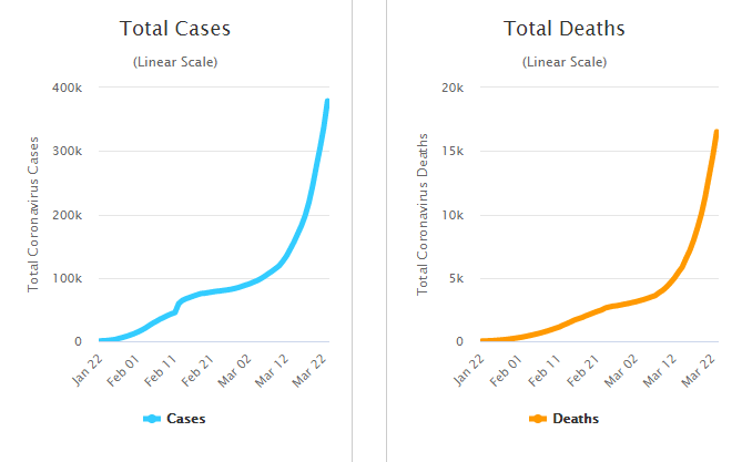 Coronavirus by the Numbers: World Figures for Tuesday, March 24th Posted byDavid Lee MoserMarch 24, 2020Posted in#corona, #coronavirus, #news, #virus Source: https://www.worldometers.info/coronavirus/ Rate this:Share this: Click to share on Facebook (Opens in new window) Facebook Click to share on X (Opens in new window) X Like Loading... Related Published by David Lee Moser I am a sixty-five year old semi-retired elementary teacher. View more posts