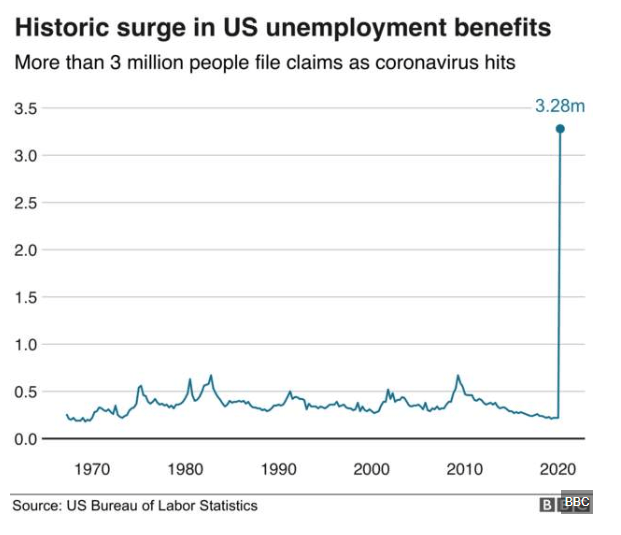 U.S. Unemployment Soars Posted byDavid Lee MoserMarch 26, 2020Posted in#corona, #coronavirus, #virus Source: https://www.bbc.com/news/live/world-52044452 Rate this:Share this: Click to share on Facebook (Opens in new window) Facebook Click to share on X (Opens in new window) X Like Loading... Related Published by David Lee Moser I am a sixty-five year old semi-retired elementary teacher. View more posts