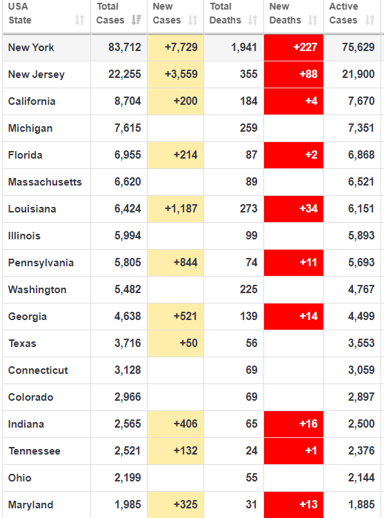 Coronavirus by the Numbers: U.S. figures Posted byDavid Lee MoserApril 1, 2020Posted in#corona, #coronavirus, #news, #virus Rate this:Share this: Click to share on Facebook (Opens in new window) Facebook Click to share on X (Opens in new window) X Like Loading... Related Published by David Lee Moser I am a sixty-five year old semi-retired elementary teacher. View more posts