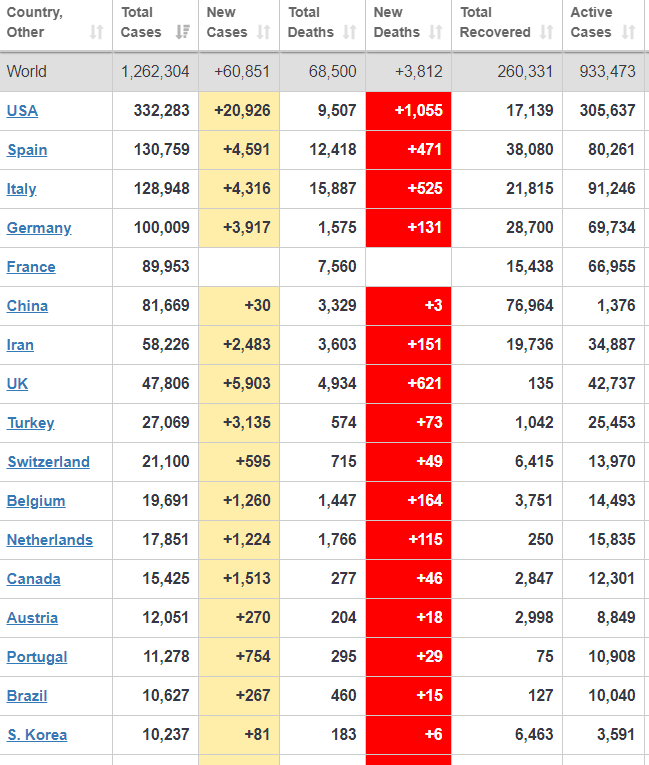 Coronavirus by the Numbers: World Figures for Sunday, April 5th Posted byDavid Lee MoserApril 5, 2020Posted in#corona, #coronavirus, #news, #virus Rate this:Share this: Click to share on Facebook (Opens in new window) Facebook Click to share on X (Opens in new window) X Like Loading... Related Published by David Lee Moser I am a sixty-five year old semi-retired elementary teacher. View more posts