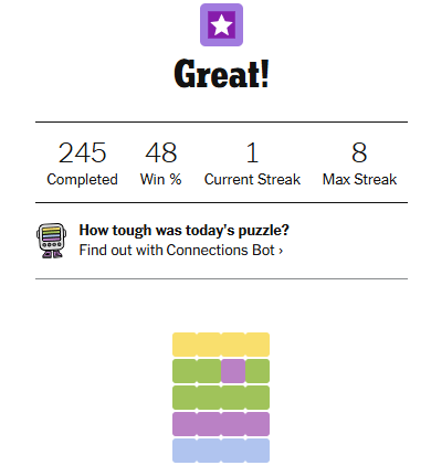 Games for Saturday, March 8th Posted byDavid Lee MoserMarch 8, 2025Posted inUncategorized Wordle 1358 4/6 ⬜🟨⬜⬜🟨🟩⬜⬜⬜🟨🟩⬜🟩⬜⬜🟩🟩🟩🟩🟩 Strands #370“Two thumbs up”💡🔵💡🔵💡🔵🟡🔵🔵 Rate this:Share this: Click to share on Facebook (Opens in new window) Facebook Click to share on X (Opens in new window) X Like Loading... Related Published by David Lee Moser I am a sixty-five year old semi-retired elementary teacher. View more posts