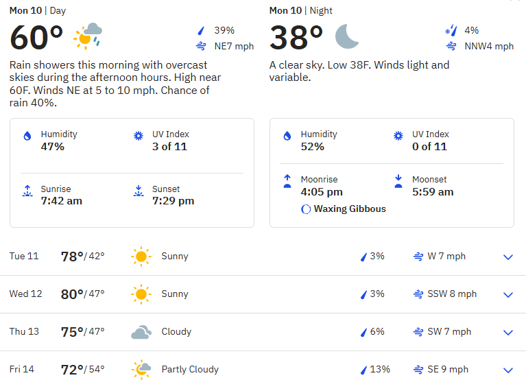 Work Week Weather for Hickory, NC Posted byDavid Lee MoserMarch 10, 2025Posted inweather Rate this:Share this: Click to share on Facebook (Opens in new window) Facebook Click to share on X (Opens in new window) X Like Loading... Related Published by David Lee Moser I am a sixty-five year old semi-retired elementary teacher. View more posts