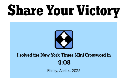 Daily Games for April 4th… Posted byDavid Lee MoserApril 4, 2025Posted inUncategorized Wordle 1385 6/6 ⬜⬜⬜⬜⬜⬜⬜⬜⬜⬜🟨🟩⬜⬜⬜⬜🟩⬜⬜🟨⬜🟩🟩⬜🟩🟩🟩🟩🟩🟩 Strands #397“Step on it!”🟡💡🔵💡🔵🔵💡🔵🔵 ConnectionsPuzzle #663🟩🟦🟩🟩🟦🟦🟦🟦🟨🟨🟨🟨🟩🟩🟩🟪🟩🟩🟩🟩🟪🟪🟪🟪 Rate this:Share this: Click to share on Facebook (Opens in new window) Facebook Click to share on X (Opens in new window) X Like Loading... Related Published by David Lee Moser I am a sixty-five year old semi-retired elementary teacher. View more posts