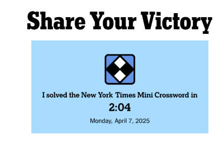 Daily Games for April 7th… Posted byDavid Lee MoserApril 7, 2025Posted inUncategorized Wordle 1388 4/6 β¬π¨β¬β¬β¬π¨β¬β¬π¨β¬β¬π¨π©β¬β¬π©π©π©π©π© Strands #400βHalf-and-halfβπ΅π‘π‘π΅π‘π΅π‘π΅π‘π΅ Rate this:Share this: Click to share on Facebook (Opens in new window) Facebook Click to share on X (Opens in new window) X Like Loading... Related Published by David Lee Moser I am a sixty-five year old semi-retired elementary teacher. View more posts