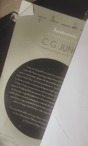 This morning, upon first waking, I did my daily ritual of posting the usual posts on social media. And as usual, I looked at several other friends’ posts and saw an ad or two along the way. One of the ads was for a Carl Jung course that one could take. This was not all that an unusual sight to see, as I have always been a big fan of his. But then comes what I’ll call a synchronicity. As I got up from my chair to get dressed for the day, I spied the back of a book haphazardly lying on a table. The book was face down and half of the back cover was bent. I then spied the name “Carl Jung.” It was his well-known book on synchronicity.