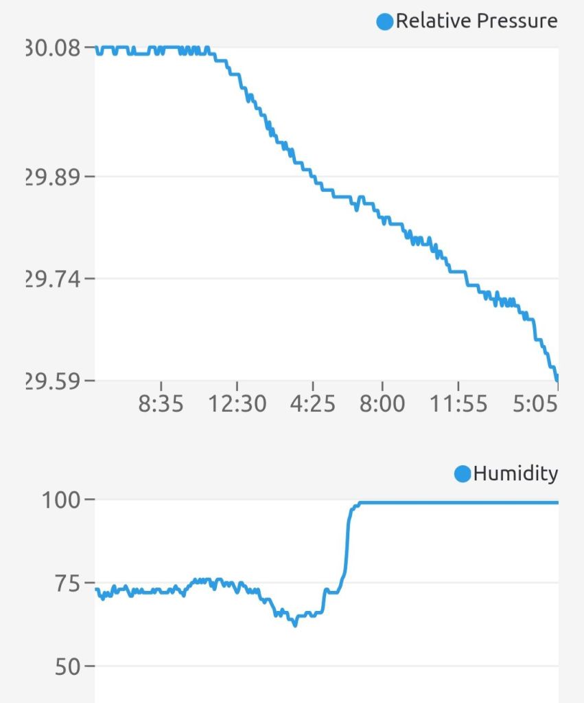 Anatomy of a Storm… Posted byDavid Lee MoserMarch 16, 2026Posted inUncategorized Radar at 5 a.m. Barometric pressure dropping while relative humidity rises Rate this:Share this: Share on Facebook (Opens in new window) Facebook Share on X (Opens in new window) X Like Loading... Related Published by David Lee Moser I am a sixty-six year old semi-retired elementary/middle school teacher. View more posts